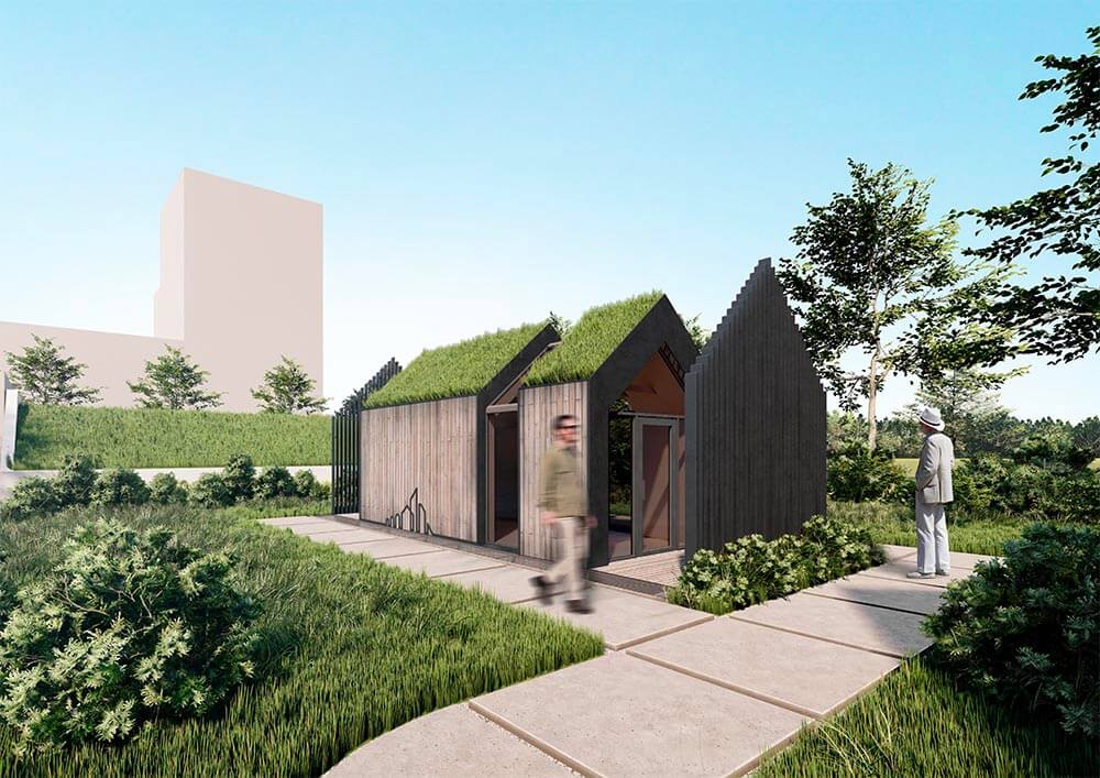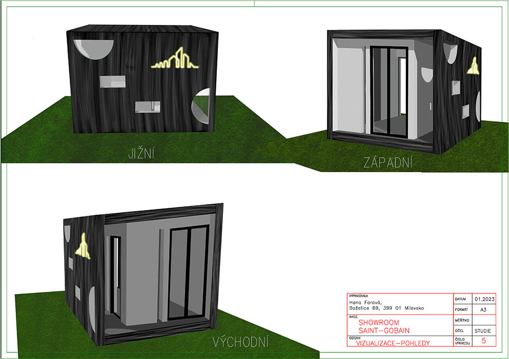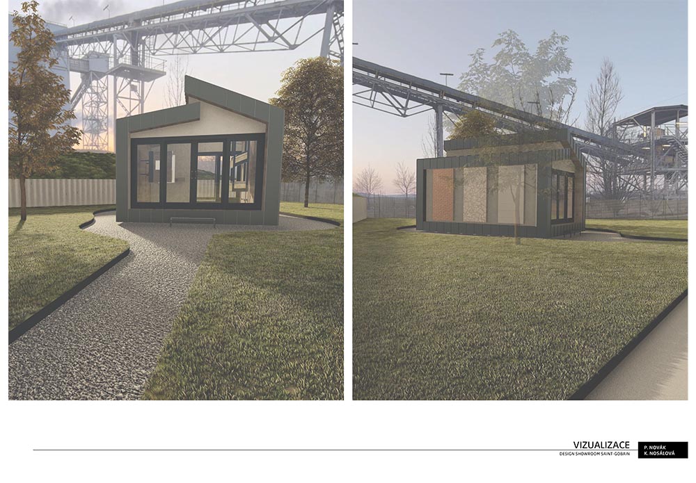 vizualizace. Showroom 2 má v exteriéru