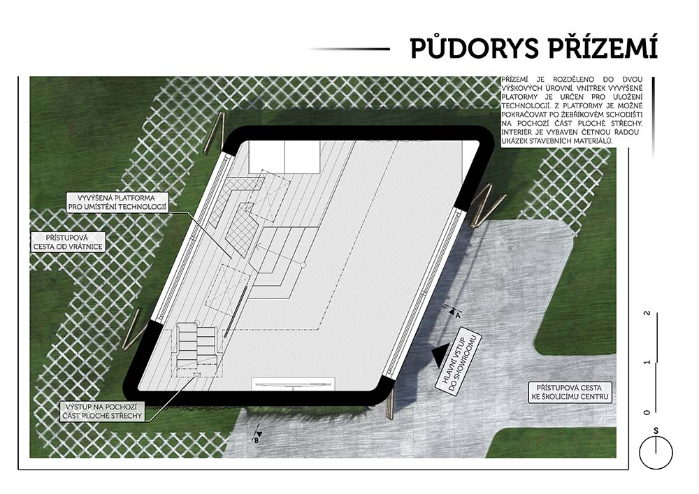 z požadavků investora. Přístupy k objektu jsou od sousedního objektu školícího