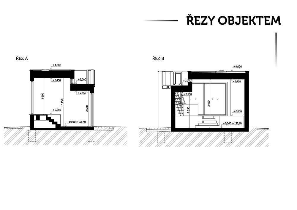 objektu je vyzdvižena nad terén pomocí základových patek. Tím pod objektem vzniká