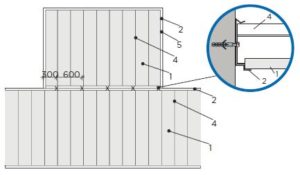 Po vyznačení výškové úrovně podhledu se na stěny podle vynesené roviny upevní speciální obvodové profily „W“. Na čela chodeb (souběžné s podélnou hranou lamel) se připevní také profil “W” nebo standardní obvodový profil „L“.